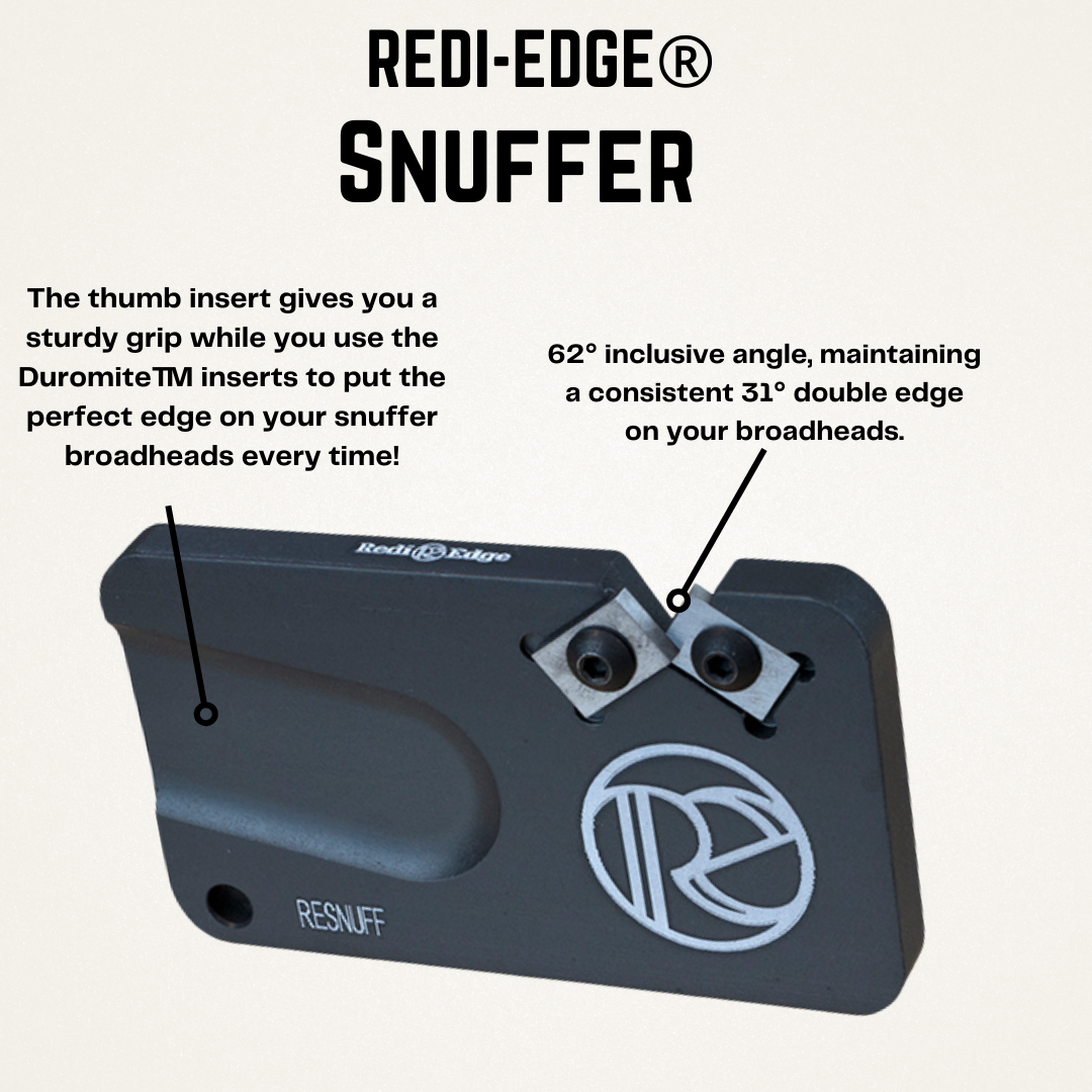 The Redi-Edge® Snuffer style Broadhead Sharpener is designed specifically for the traditional snuffer style broadheads. Not only can you re-sharpen broadheads but you can polish and hone the edges on the back of this sharpener for that final razor-sharp edge!