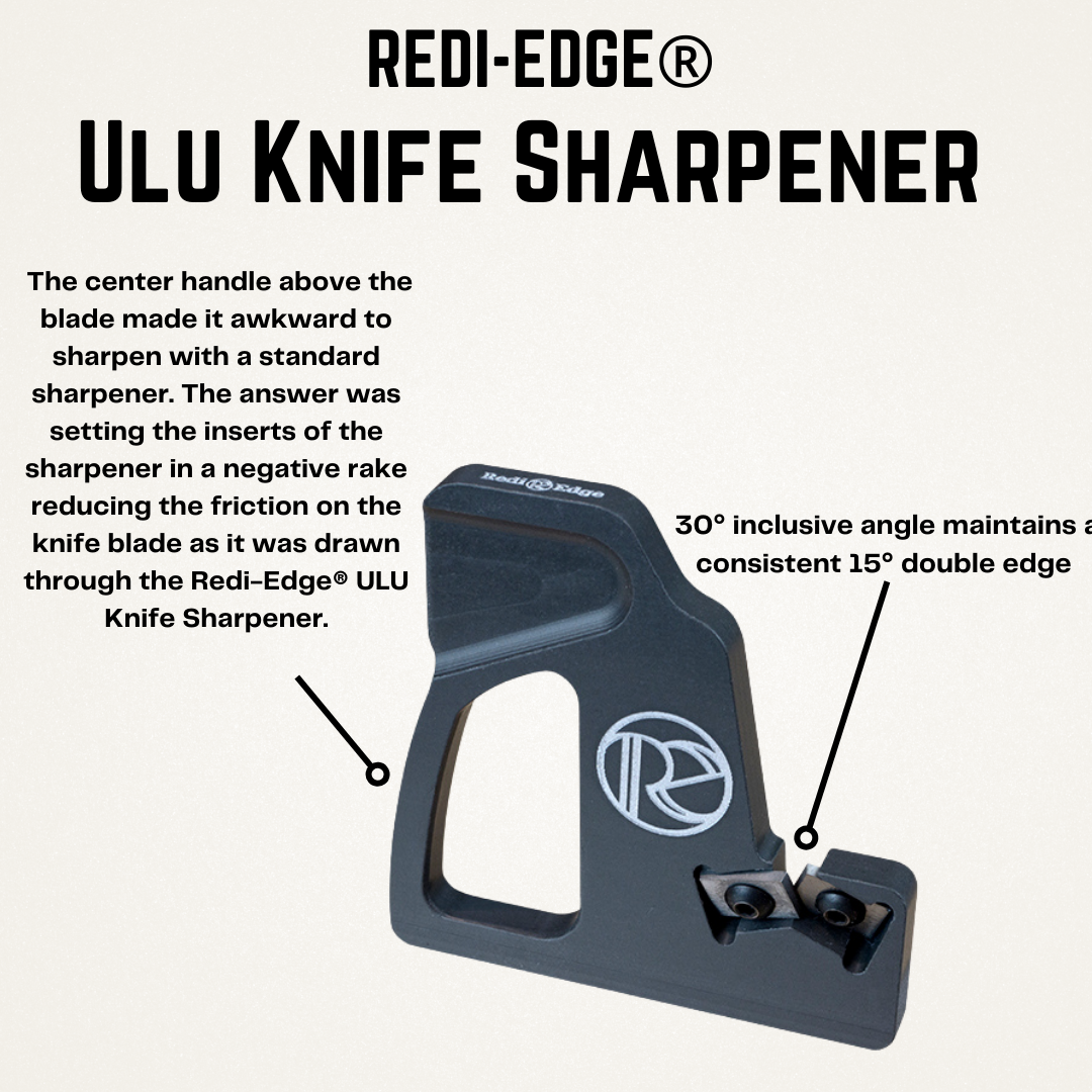 The Redi-Edge® ULU Knife Sharpener was created to make sharpening a curved blade easier! This sharpener was specifically designed to sharpen the Alaskan Ulu blade. The Ulu knife sharpener has the same Duromite™ sharpening elements and ceramitized coating as the Redi-Edge® Tactical, making it durable and reliable. The Redi-Edge® ULU comes factory-set with an inclusive angle of 30°. The 30° inclusive angle maintains a consistent 15° double edge on your ULU knife.
